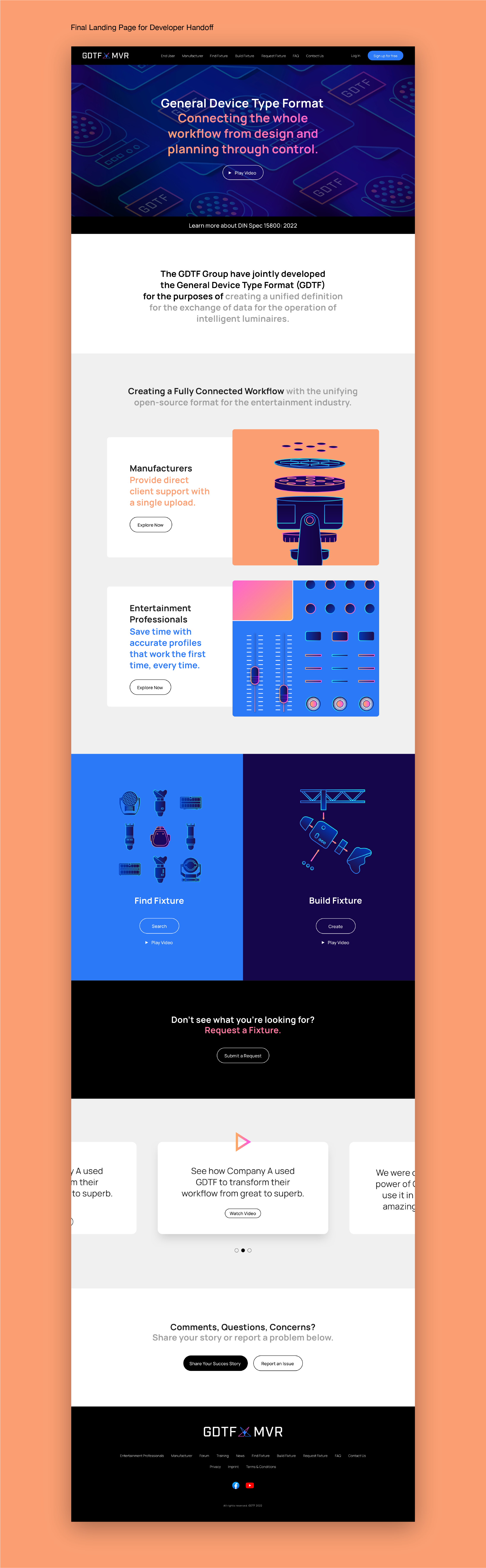 Our redesign started with a simple goal: to help hardware manufacturers and entertainment professionals adopt GDTF and MVR into their workflow. We wanted to make it easier for prospective users from both sides to access information and get started. With the addition of new resources, updates, and branding, it was important to revamp our digital presence.